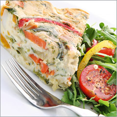 Mix all ingredients together and pour into a greased quiche dish and bake at 180 degrees for 40 minutes or until set. Serve warm or cold.